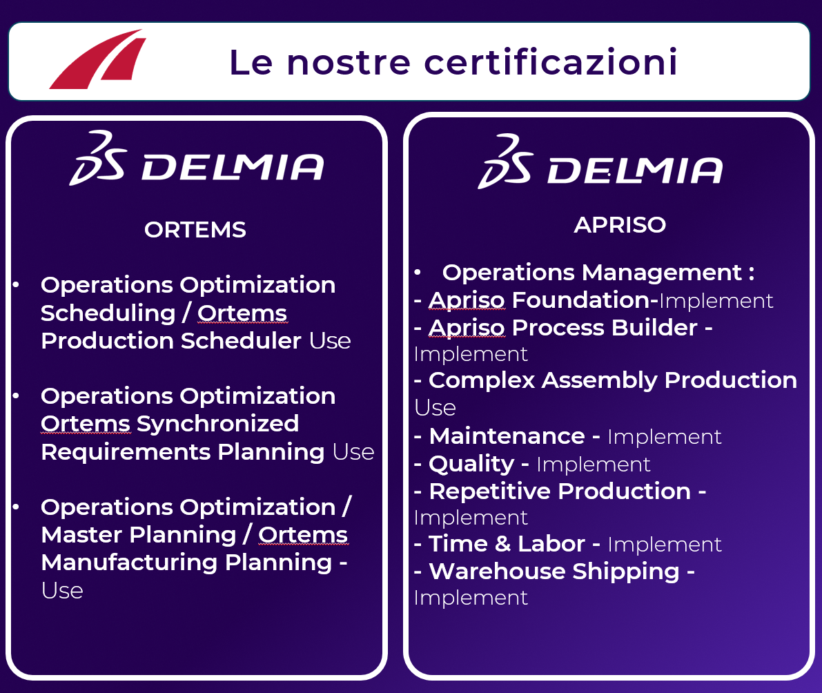 Lutech Stain può contare su un team di sviluppatori e consulenti certificati su DELMIA Ortems, in grado di accompagnare le aziende dall’analisi iniziale all’implementazione e all’integrazione con MES, ERP e sistemi di fabbrica. Grazie a queste competenze, siamo in grado di offrire un servizio end-to-end che unisce gestione operativa, pianificazione avanzata e ottimizzazione della supply chain.